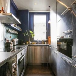 Inside, you’ll find a spacious living room flooded with natural light, two cozy bedrooms with ample storage, a modern shower room, and a separate WC. The fully equipped kitchen is perfect for everyday living. Enjoy the warmth of gas heating during winter and easy access to local shops, restaurants, and transport lines.