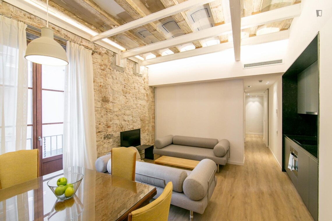 If you’re coming to the sunny city of Barcelona and looking for a welcoming, comfortable, and ideally located flat, this apartment is the perfect choice. Situated in the heart of Sant Pere – Santa Caterina i la Ribera, one of Barcelona’s most vibrant and central districts, this charming apartment offers everything you need for a well-provided, enjoyable stay.